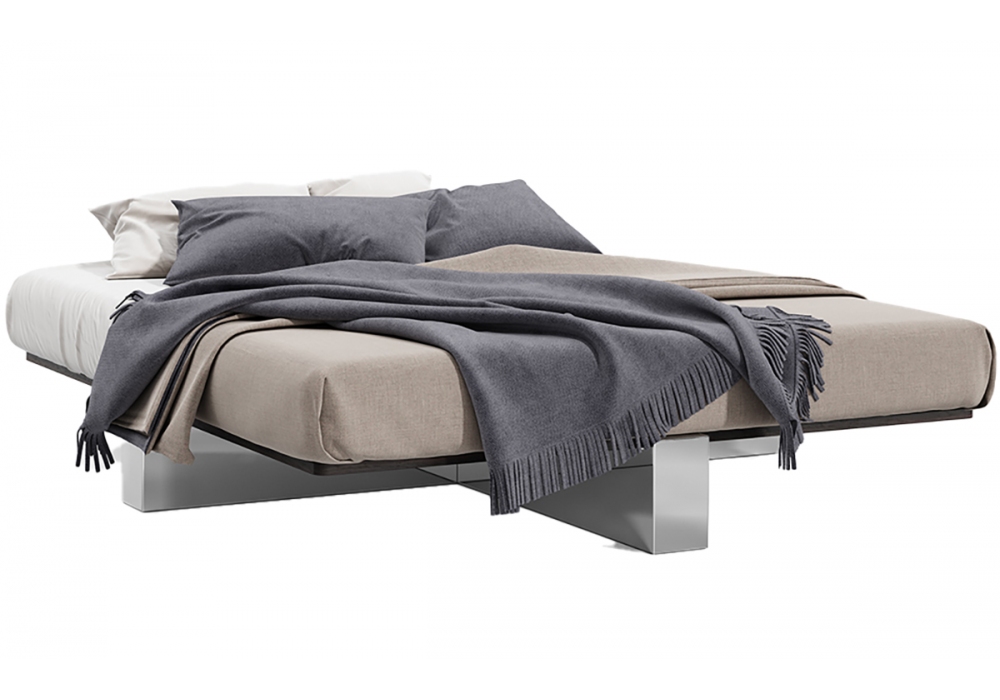 Letto 4 diseñada por Ferruccio Laviani para Emmemobili es una cama sin cabecero con base realizada en madera contrachapada o revestida en acero o latón. Somier de contrachapado fresado con estructura de refuerzo de metal. Disponible en dos tamaños. Colchón no incluido, se puede comprar por separado.