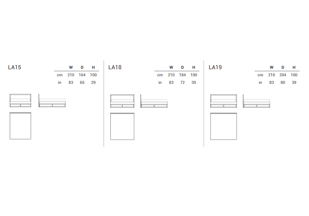 | Dimensiones | - 210 x 164 x H 100 cm; - 210 x 184 x H 100 cm; - 210 x 204 x H 100 cm. |