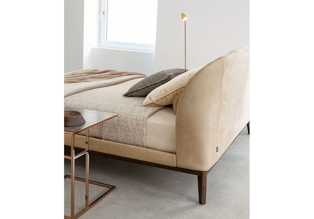 Carnaby Wood diseñada por Studio Balutto Associati para Twils es una cama tapizada con un somier de 13 cm de altura, realizada en diferentes medidas. La funda no es desenfundable, en diferentes tejidos y colores. La base y el marco son de madera de fresno color café.