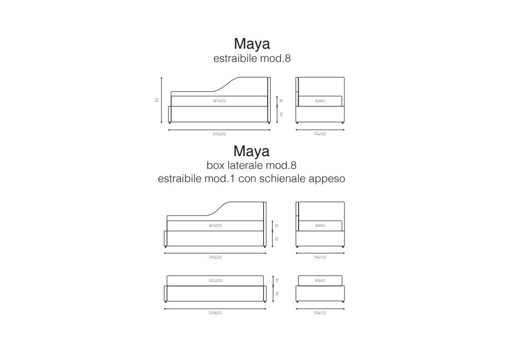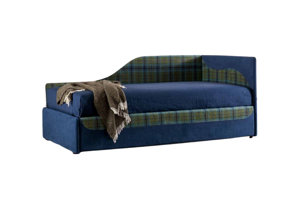 Maya Mod. 8 diseñada y producida por Twils es una cama individual extraíble con caja lateral. La funda extraíble está disponible en varios tejidos y colores. Bajo pedido, puede ser bicolor con decoración Wave.
