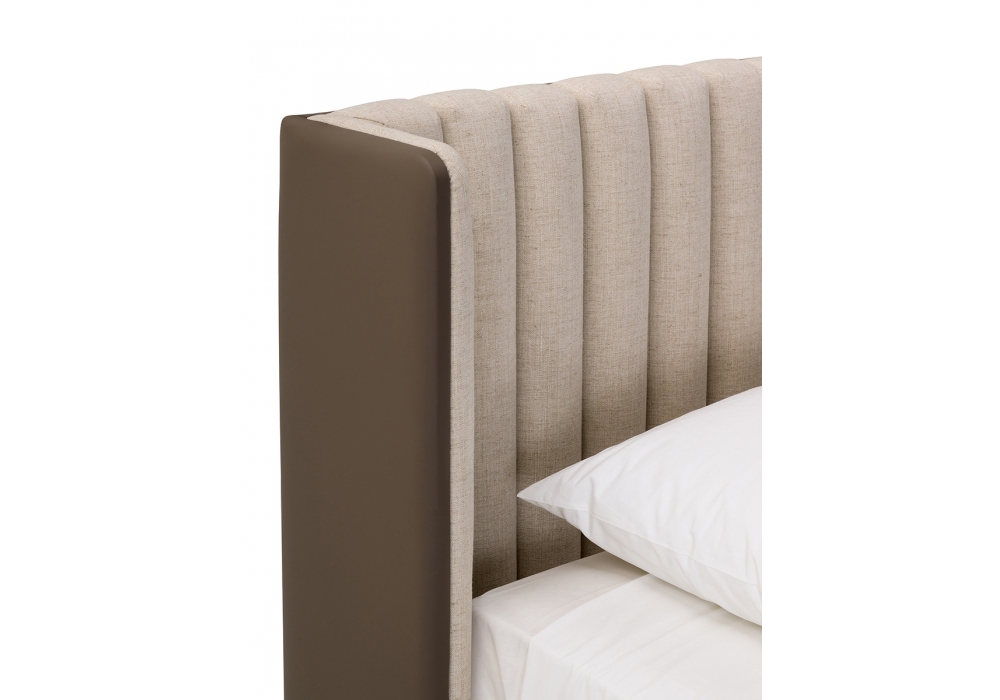 Domus diseñada por Matteo Nunziati para Turri es una cama con estructura en madera contrachapada y madera maciza con acolchado en espuma de poliuretano multidensidad. Estructura y cabecero tapizados en diferentes pieles o tejidos.