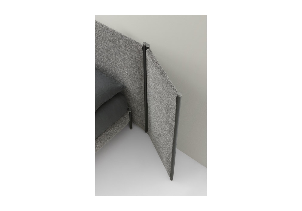 Bricola diseñada por Raffaella Mangiarotti para Pianca es una cama con montantes realizados en madera maciza de nogal acabado Canaletto o en fresno macizo pintado Essenza o lacado y puntas decorativas de metal. Estructura en dos versiones, somier o marco de la cama, con paneles de aglomerado acolchados con poliuretano expandido. La funda desenfundable está hecha de tela. Disponible con somier o contenedor.