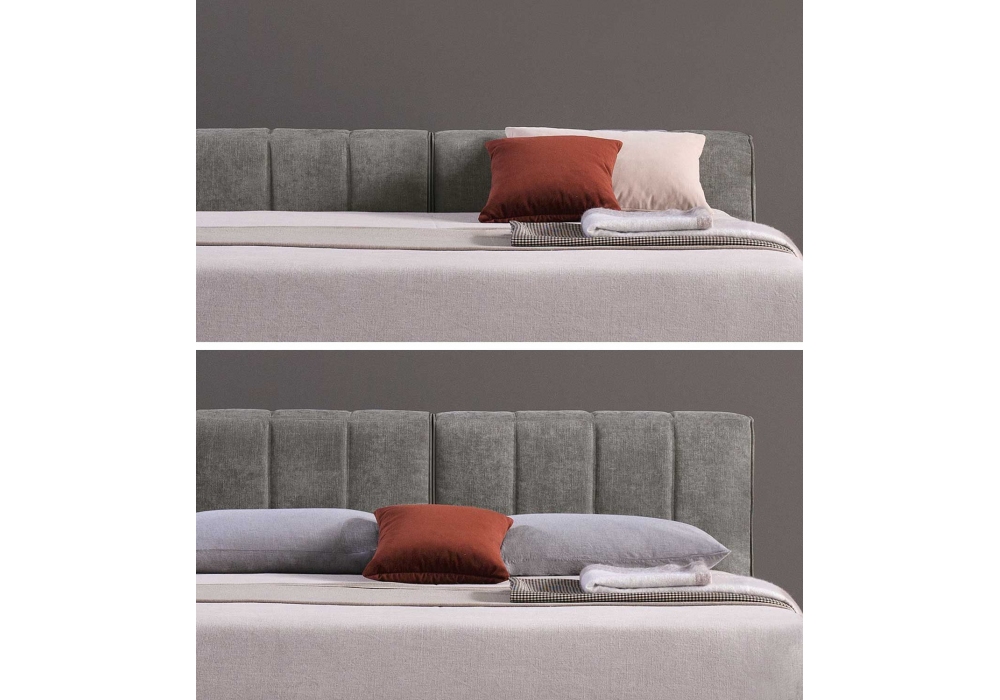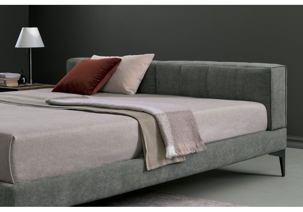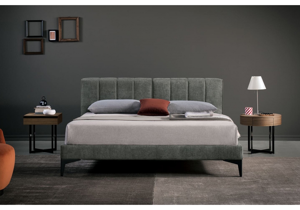 Harry diseñada por Studio RES para Bodema es una cama con estructura de madera revestida de poliuretano expandido. Base de metal y lamas de haya con ajustadores de rigidez. Acolchado de poliuretano recubierto con forro de pana de fibra de nailon. Pies de metal en acabado Manganeso. Revestimiento de tela completamente desenfundable. Tapicería de cuero con posibles costuras en el armazón de la cama. Disponible con dos alturas de cabecero, 75 o 97 cm.