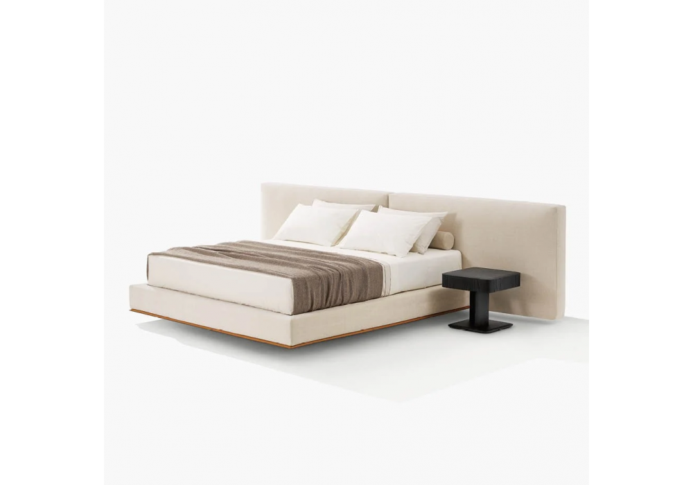 Brera diseñada por Jean Marie Massaud para Poliform es una cama con cabecera en madera y derivados de la madera con acolchado en poliuretano flexible multidensidad, prerevestimiento en fibra de poliéster y tapizado en tejido o piel desenfundable. Estructura de cama de madera maciza con acolchado de poliuretano flexible monodensidad, prefunda de fibra de poliéster, estructura perimetral de piel, tapizado final desenfundable en tela y piel o en piel fija en los colores de muestra. Pies de metal pintado níquel marrón mate o, bajo pedido, de metal mate y brillante visillo claro o visillo oscuro. En la versión master pies en material plástico. Disponible en diferentes medidas.