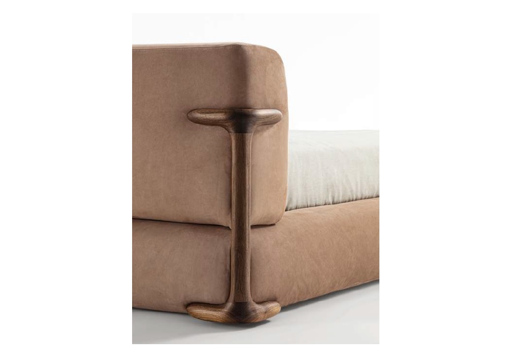 Klem diseñada por Giuseppe Viganò para Porada es una cama con estructura en contrachapado de abedul revestida en tejido o piel desenfundable. Detalles estructurales en nogal canaletta macizo.