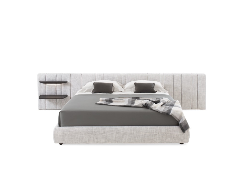 Karphi Nap diseñada por Carlo Colombo para Giorgetti es una cama con estructura interna de madera contrachapada y acolchado de gomaespuma. Estructura de cama y cabecero revestidos en tela o piel, incluso diferentes. Posibilidad de añadir mesitas de noche o estanterías con o sin LED. Configuración personalizable. La cama también está disponible en diferentes tamaños.