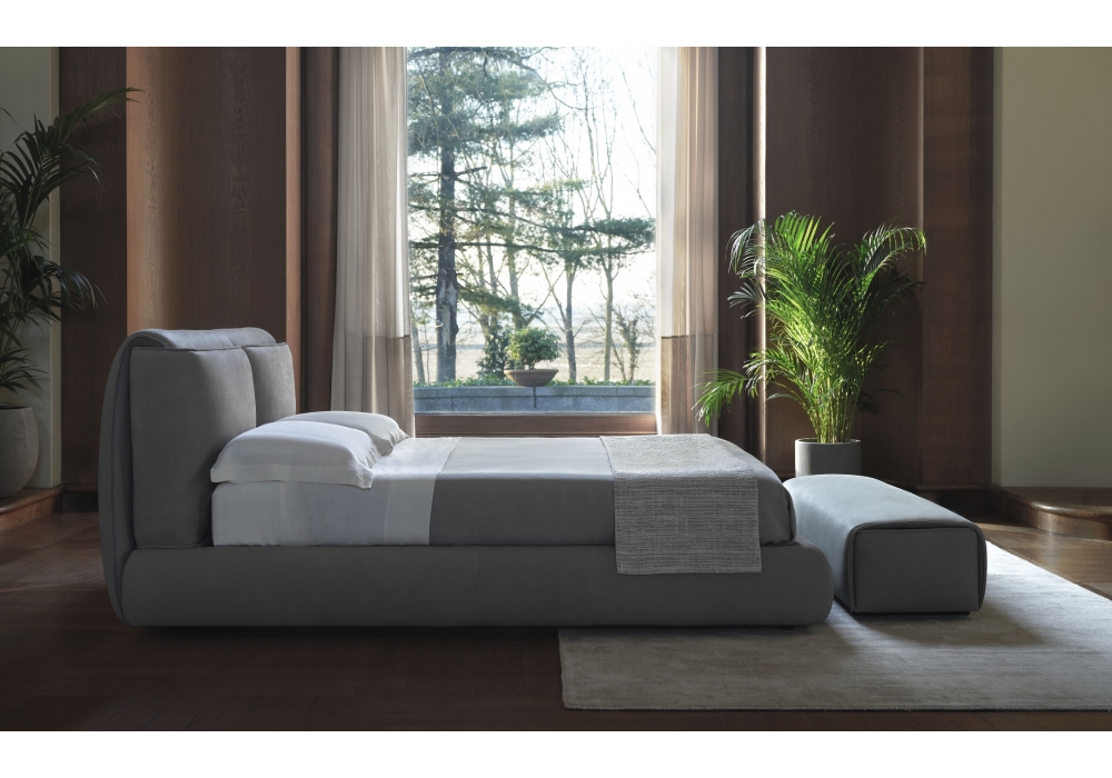 Pillow diseñada por Corrado Dotti para Conte Casa es una cama con revestimiento en tela o piel. Disponible en diferentes acabados y dimensiones.