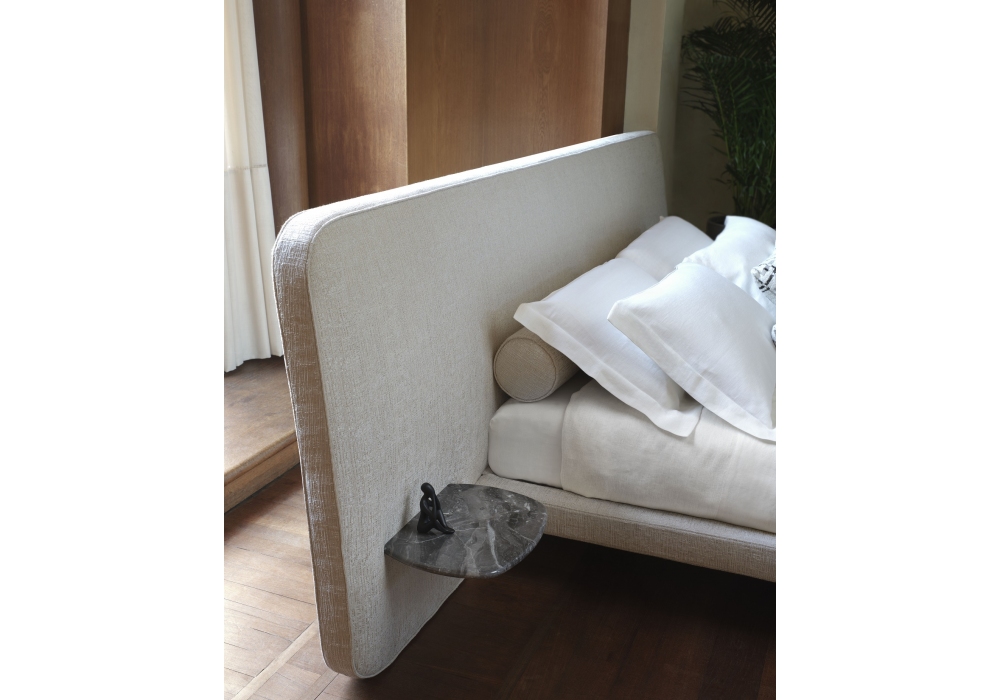 Nube Royal diseñada por Antonio Lanzillo para Conte Casa es una cama con tapizado en tejido o piel totalmente desenfundable. Mesillas de mármol. Disponible en diferentes acabados y dimensions.
