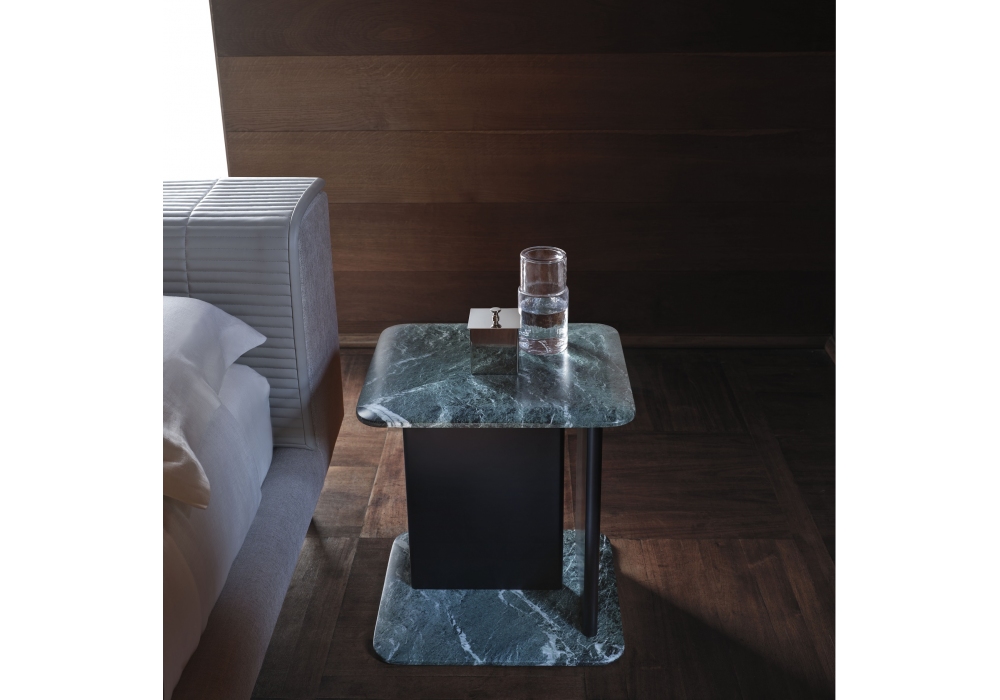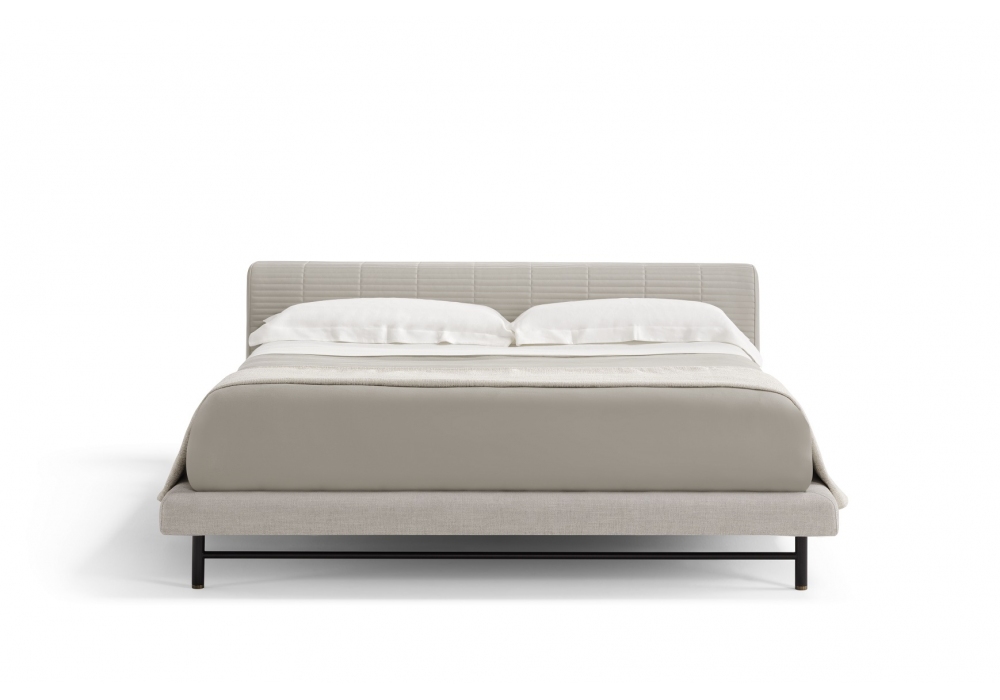 Cricket diseñada por Dainelli Studio para Conte Casa es una cama con tapizado parcialmente desenfundable en tejido o piel. Base en metal negro o bronce. Disponible en diferentes acabados y dimensiones.