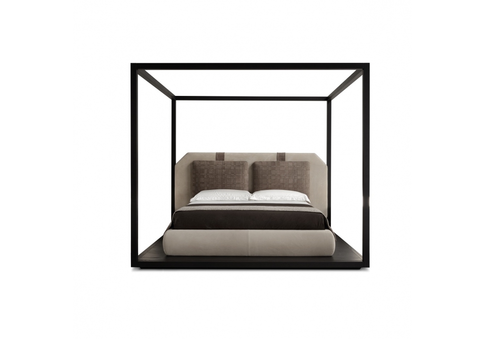 Karl diseñada por Joe Garzone para Conte Casa es una cama con dosel realizada con estructura de madera de fresno y tapizada en tejido o piel parcialmente desenfundable. Disponible en diferentes acabados y dimensiones.