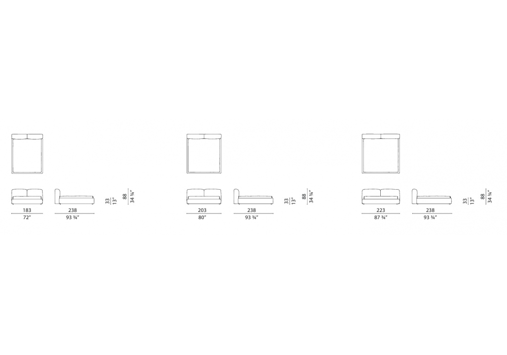 Oblong Plus Bed diseñada por Jasper Morrison para Cappellini es una cama tapizada con contenedor y funda desenfundable en tejidos y pieles de la colección.