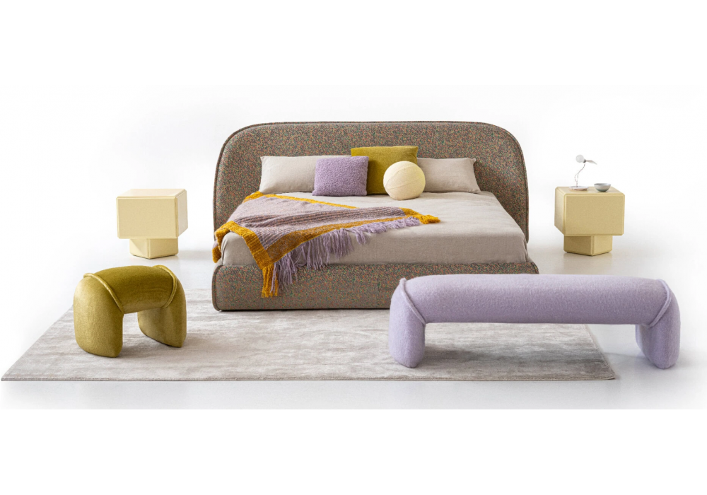 Sedona diseñada por Patricia Urquiola para Moroso es una cama con cabecero de Polimex® con insertos de poliuretano blando. La estructura de la cama está hecha de contrachapado y paneles de poliuretano blando. La cama está completamente tapizada con diferentes telas.