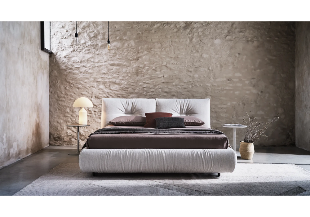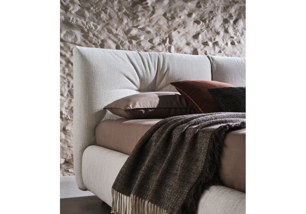 Kumo diseñada por Paolo Grasselli para Twils es una cama disponible con o sin compartimento de almacenaje y sistema de flotación (base ortopédica plus). La tapicería es de tela o piel en varios acabados.
