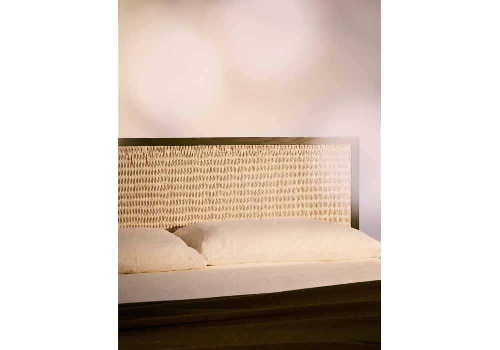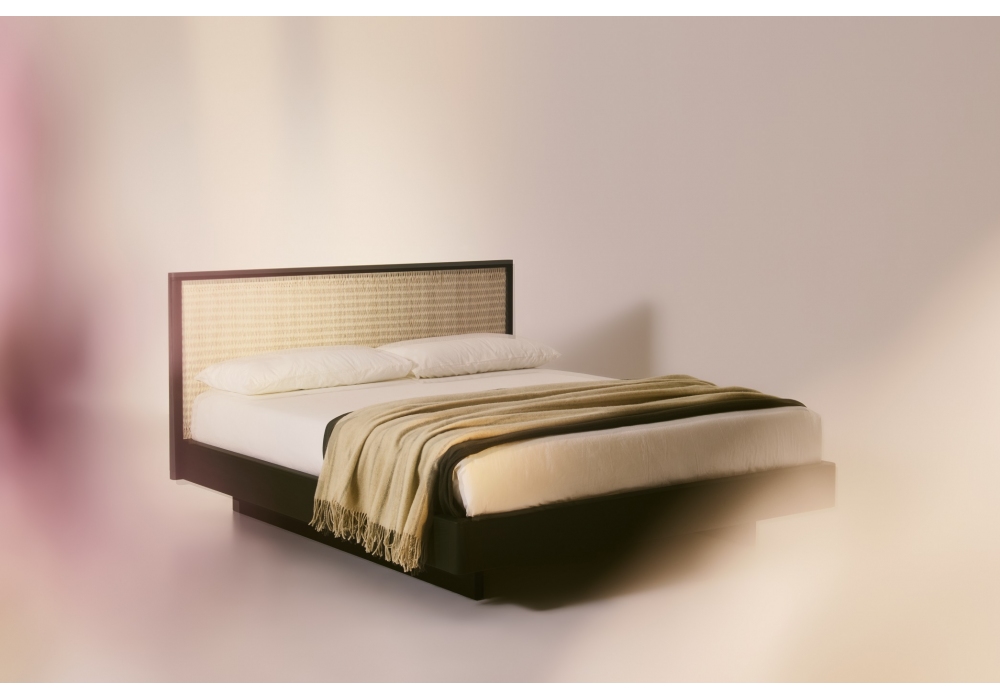 Awase diseñada por Studio Omi Tahara para Bolzan es una cama en madera de fresno - disponible en diferentes acabados. Tapizado artesanal de midollino. Base estándar, disponible solo en laca negra mate.