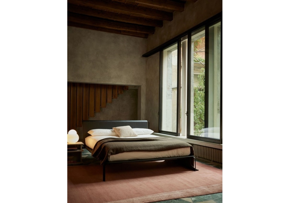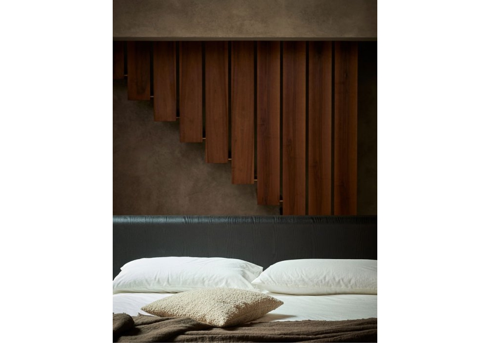 Bend-e wood diseñada por Zanellato/Bortotto para Bolzan es una cama con estructura de hierro, cabecero y base de madera, conformada en un solo cuerpo que se extiende a lo largo de toda la estructura y reposa sobre patas de hierro forjado. Zanellato/Bortotto también se encargó de los acabados, seleccionando pigmentos naturales que se aplican manualmente a la estructura de madera y a las piezas de hierro, y luego se fijan con cera de abejas especial, para realzar una vez más el respeto por el territorio.