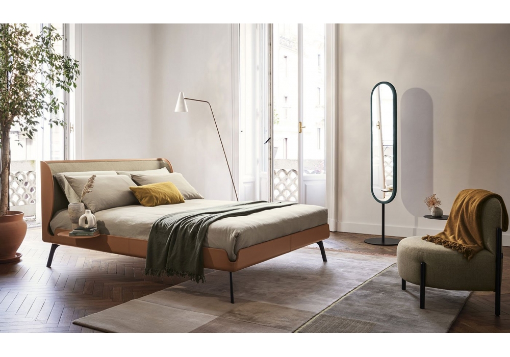 Gabri diseñada por Matteo Zorzenoni para Bolzan es una cama con estructura en acabado negro grafito RAL 9011 y revestimiento exterior fijo, disponible en cuero en los colores 32, 49, 84, 880. El cabecero interior está tapizado en tejido. Gabri, con sus líneas envolventes y sensuales y sus dimensiones compactas, es perfecto tanto para espacios grandes como pequeños.