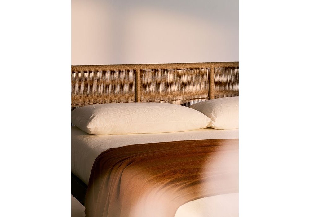 Jack-e intreccio diseñada por Zanellato/Bortotto para Bolzan es una cama con estructura en madera de fresno - disponible en diferentes acabados. Revestimiento en cuerda avana tejida a mano.