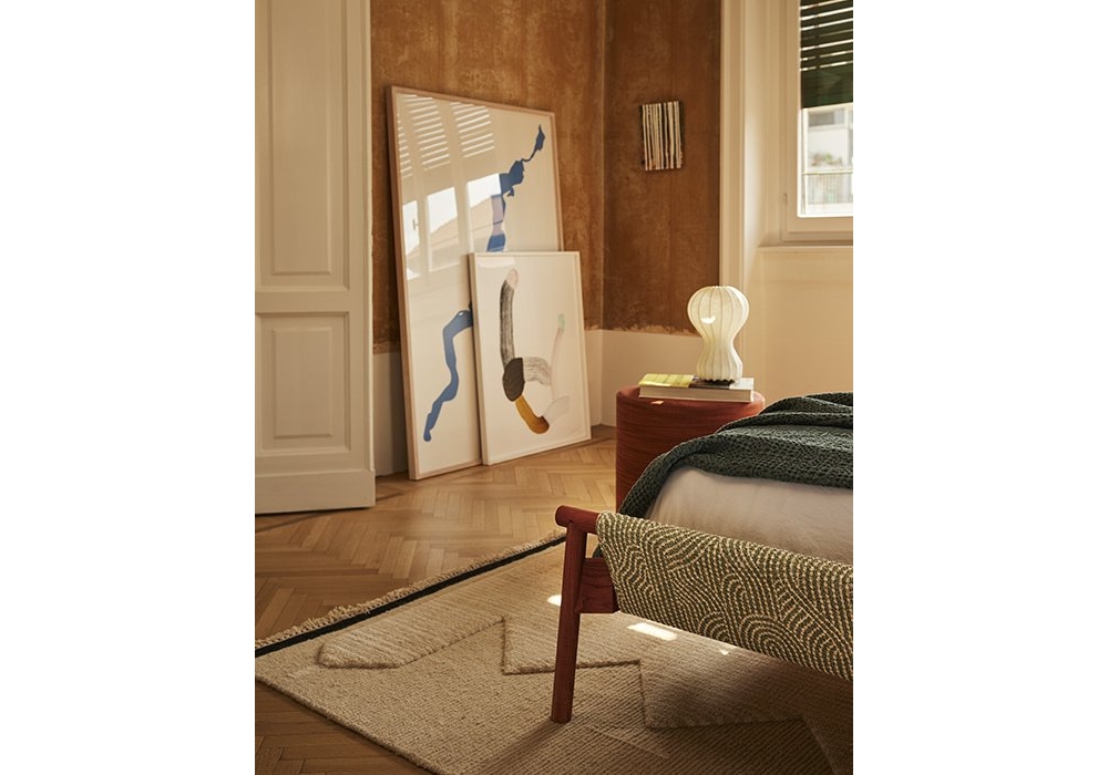 Jack-e tessuto diseñada por Zanellato/Bortotto para Bolzan es una cama con estructura en madera de fresno - disponible en diferentes acabados. Revestimiento en tejido.
