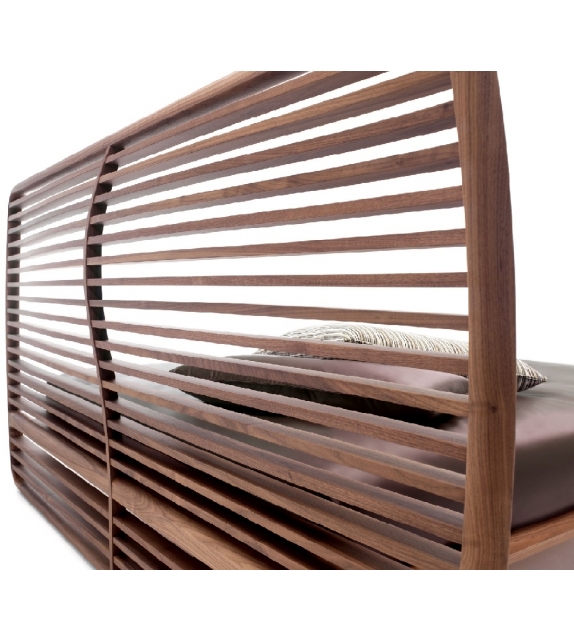 Buonanotte Valentina by Ceccotti Collezioni is a bed made in solid American walnut, headboard made with curved wooden slats. Available with high or low headboard (mattress 180 x 200 excluded).