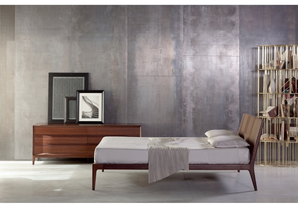 Brad by Ceccotti Collezioni is a bed made in solid American walnut, upholstered headboard, quilted in fabric or leather, bed base in veneered plywood. Mattress excluded.