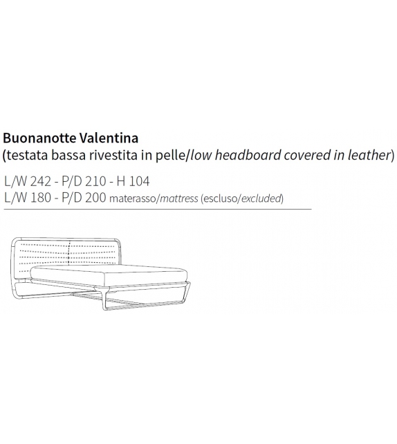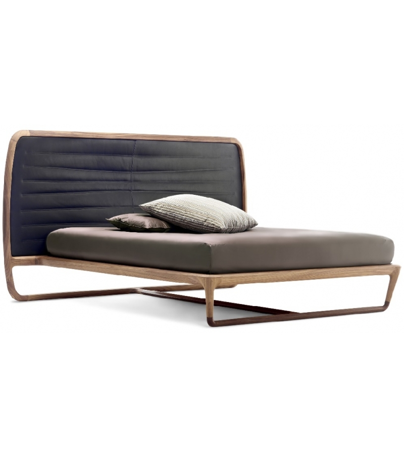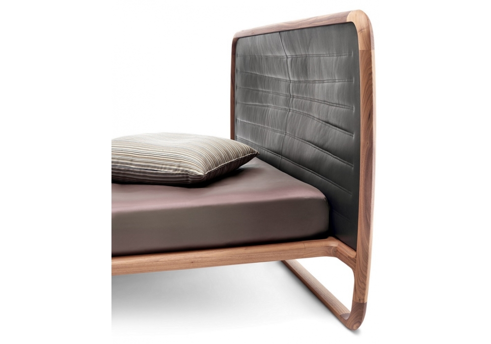 Buonanotte Valentina by Ceccotti Collezioni is a bed made in solid American walnut, low headboard upholstered in leather. Bed base in veneered plywood. Mattress 180 x 200 excluded.