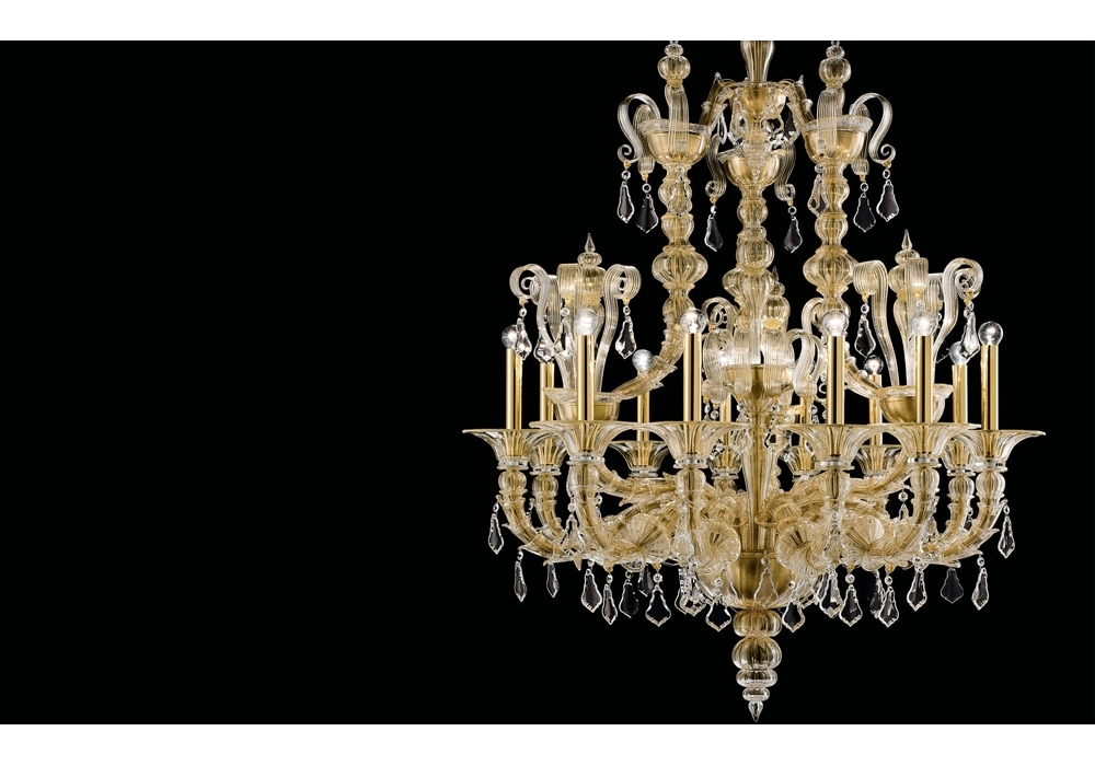 Riyadh diseñada y producida por Barovier & Toso es una candelabro con estructura portante y detalles en metal revestido en cristal veneciano con colgantes en cristal veneciano. Las fuentes de luz adoptadas son del tipo LED regulable o halógena. Riyadh está disponible en diferentes modelos y acabados.