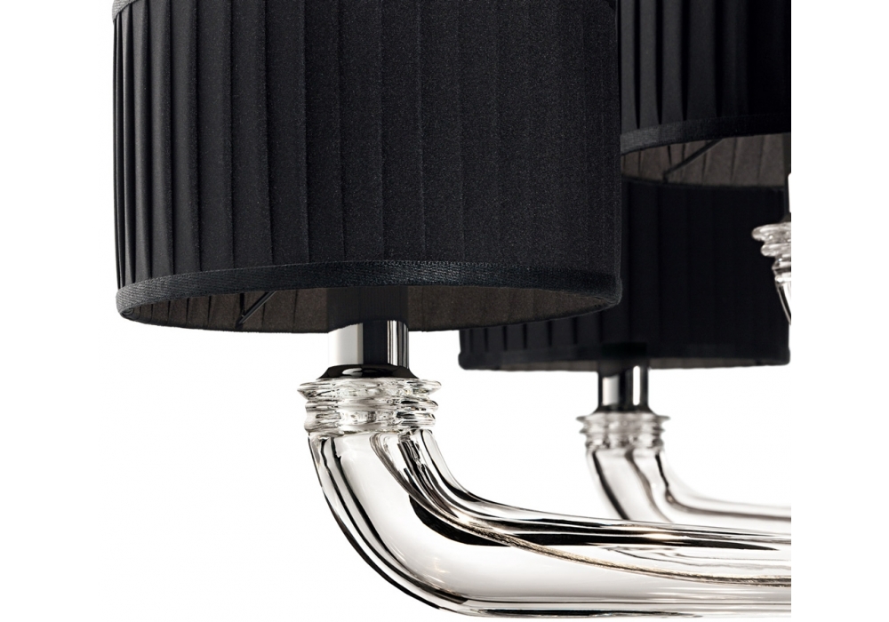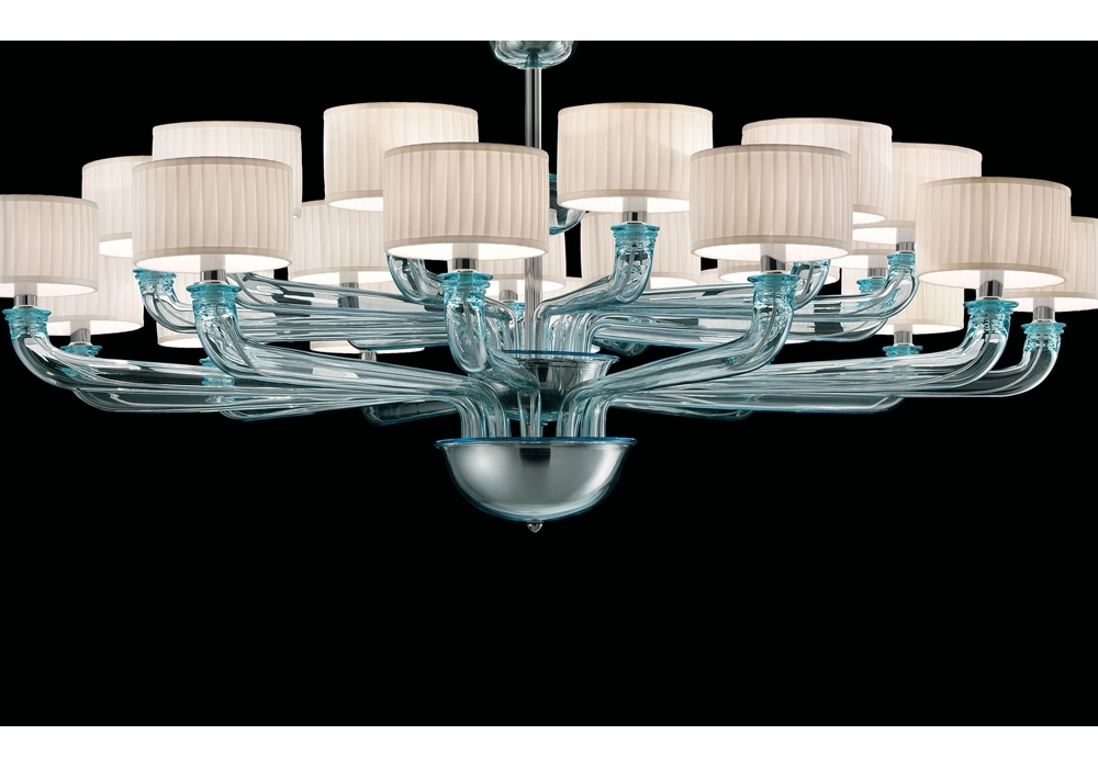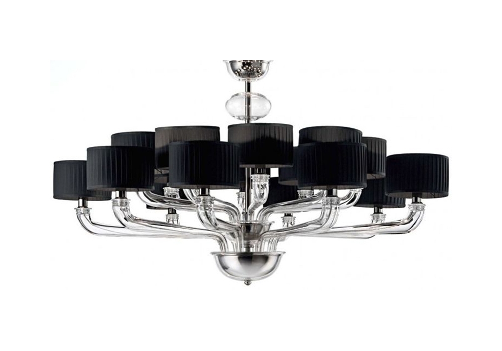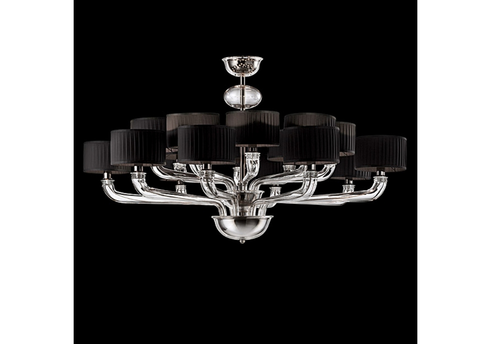 Babylon diseñada y producida por Barovier & Toso es una candelabro estructurada de 1 o más niveles superpuestos con estructura de metal y brazos revestidos de cristal y cristal veneciano. Los brazos soportan pantallas de tela que protegen las fuentes de luz LED o halógenas regulables. Babylon está disponible en diferentes modelos y acabados.