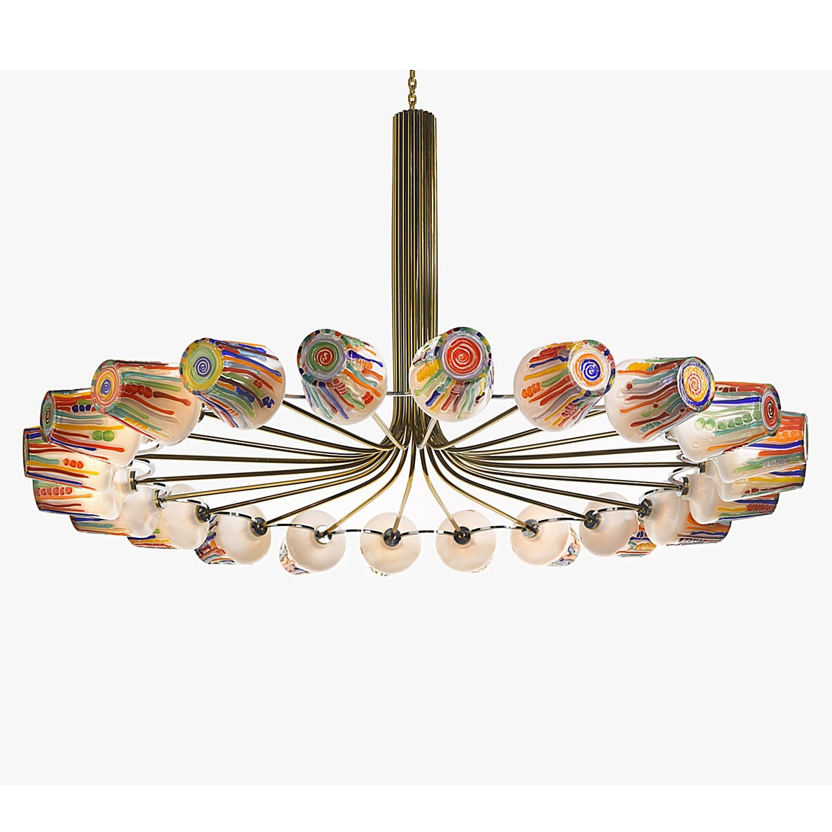 Candy diseñado por Campana Brothers para Lasvit es un hermoso chandelier realizado en vidrio soplado a mano y metal. Disponible en dos modelos diferentes.