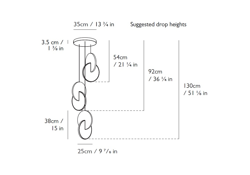 Eclipse, producida y firmada por Lee Broom, es una lámpara de araña compuesta por seis discos en cromo pulido espejo y difusor acrílico opalino. La fuente de luz adoptada es del tipo LED regulable.