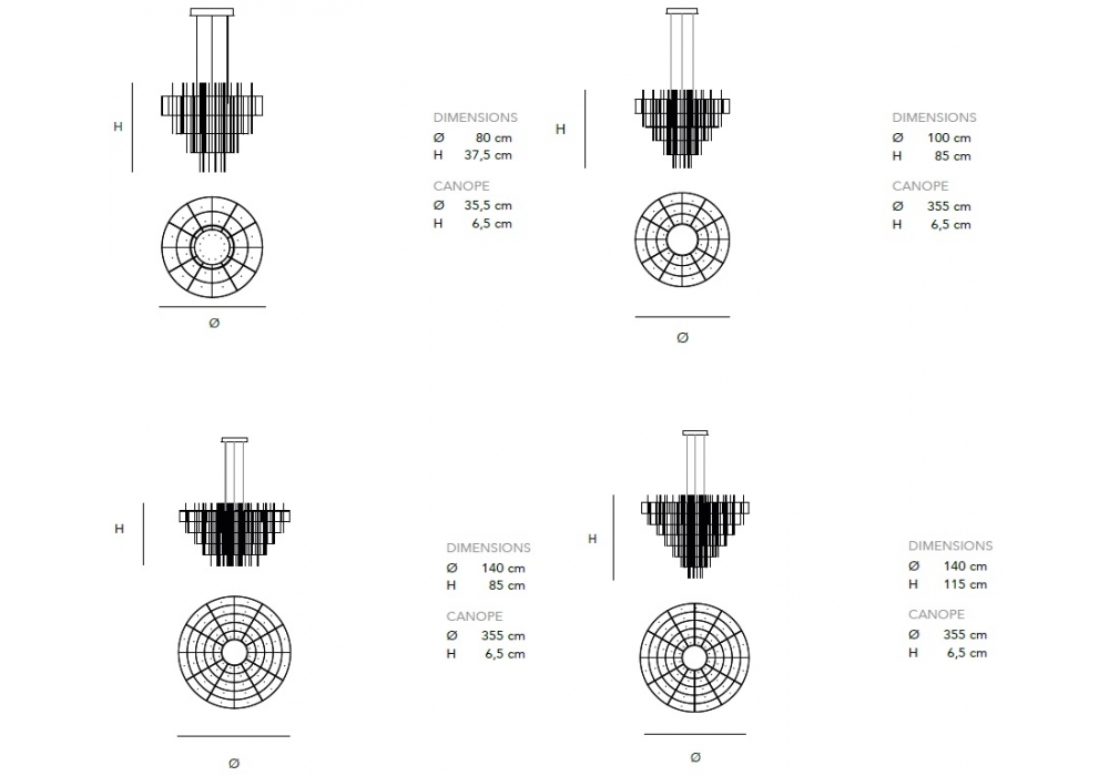 | Dimensiones | Ø 80 x H 37.5 cm; Ø 100 x H 85 cm; Ø 140 x H 85 cm; Ø 140 x H 115 cm. |
