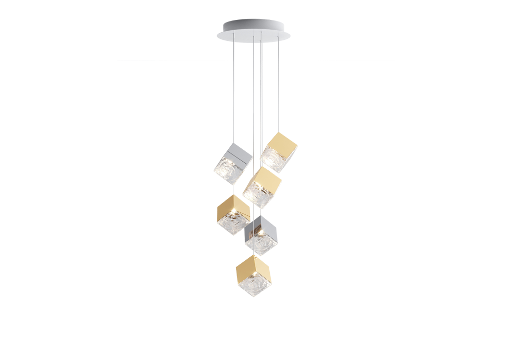 Pyrite diseñado por Studio Dechem para Bomma es un candelabro realizado a mano a partir de difusores de cristal soplado a mano. Está disponible en diferentes acabados y configuraciones.