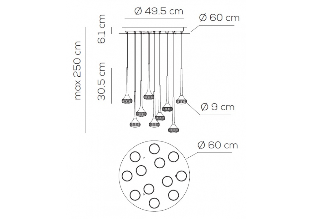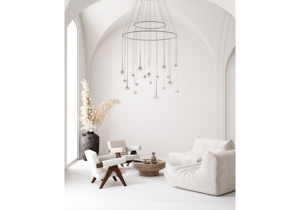 Fairy diseñada por Manuel Vivian para Axo Light es una araña con estructura de metal y difusores de cristal. Disponible en diferentes acabados y medidas.