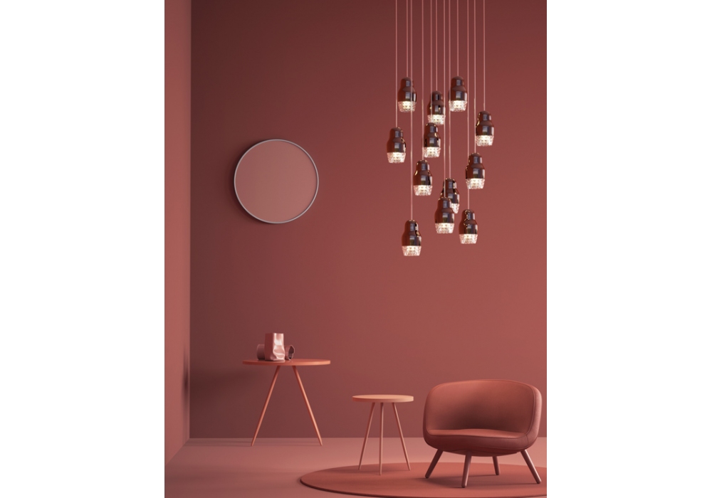 Fedora diseñada por Dima Loginoff para Axo Light es una lámpara de araña realizada en aluminio metalizado y cristal transparente. Disponible en diferentes acabados, modelos y medidas.