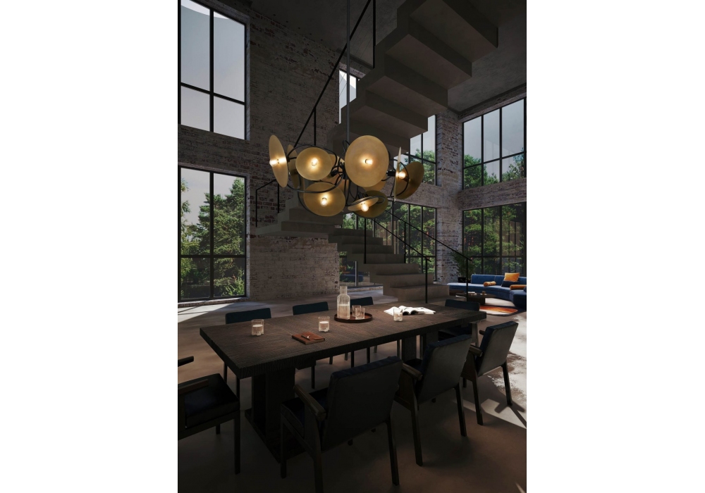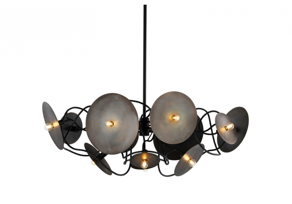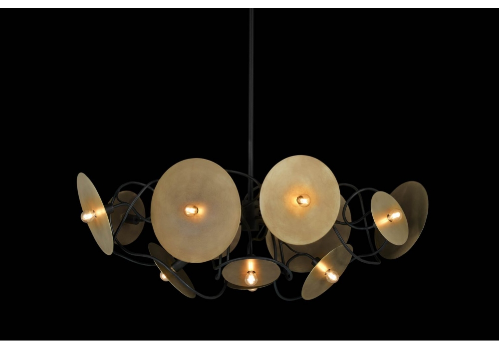 Solis Oval diseñado por William Brand para Brand Van Egmond es un candelabro realizado con estructura de metal y reflectores. Disponible en diferentes acabados.