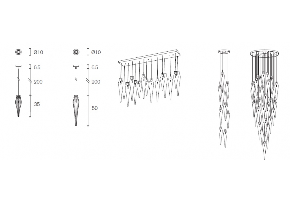 Primavera Icicles diseñado por William Brand para Brand Van Egmond es un candelabro realizado con estructura de metal y difusores de vidrio. Disponible en diferentes acabados y dimensiones.