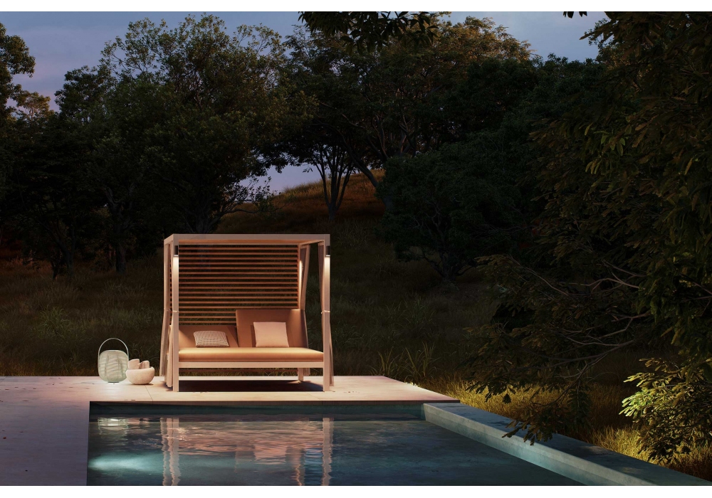 Daybed diseñado y producido por Kettal Studio es un cenador de exterior con una estructura fabricada íntegramente en aluminio. La cama tiene un respaldo reclinable, acolchado y revestido de tela. Daybed está disponible en diferentes acabados de estructura y tela.