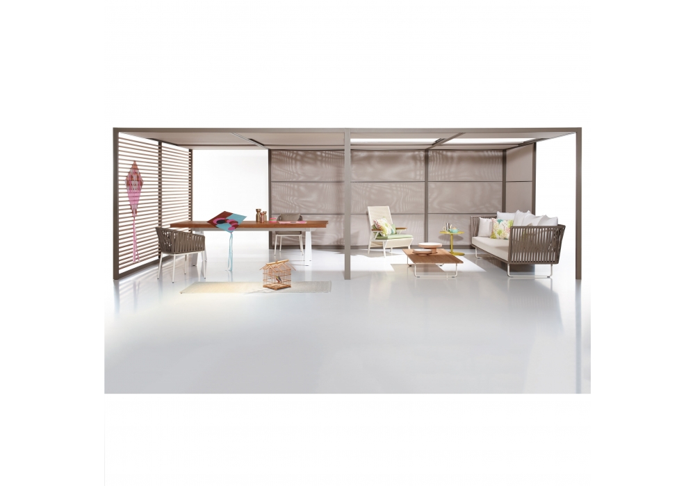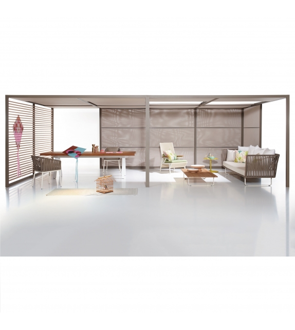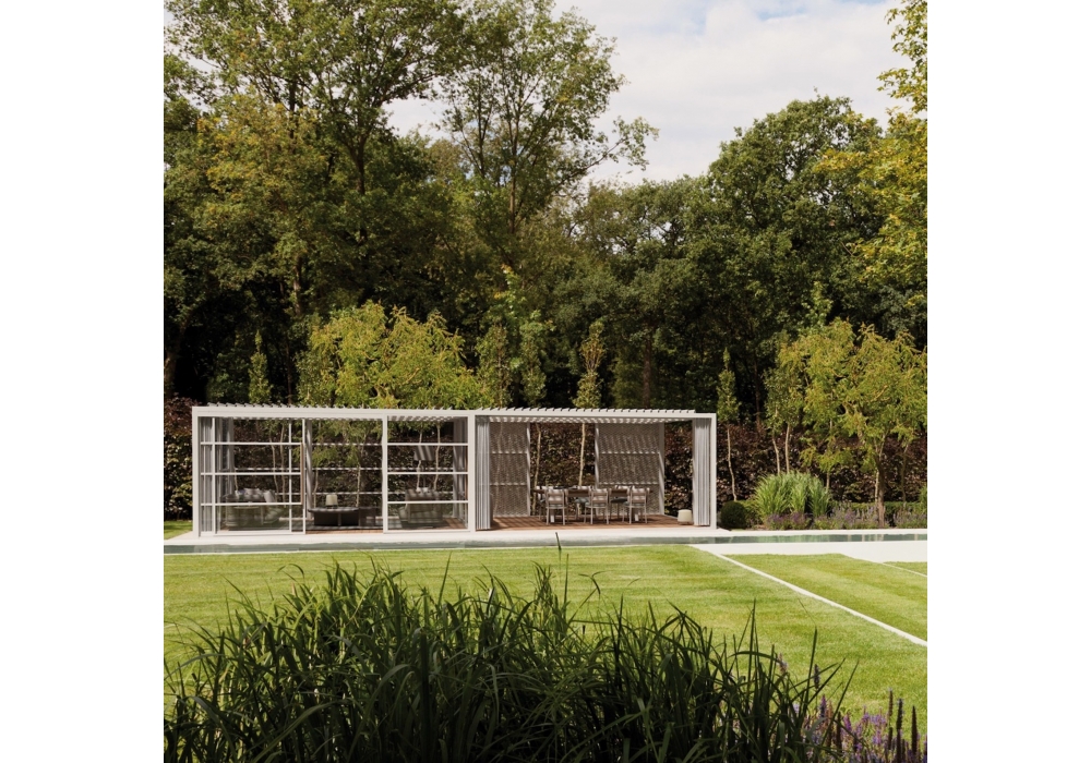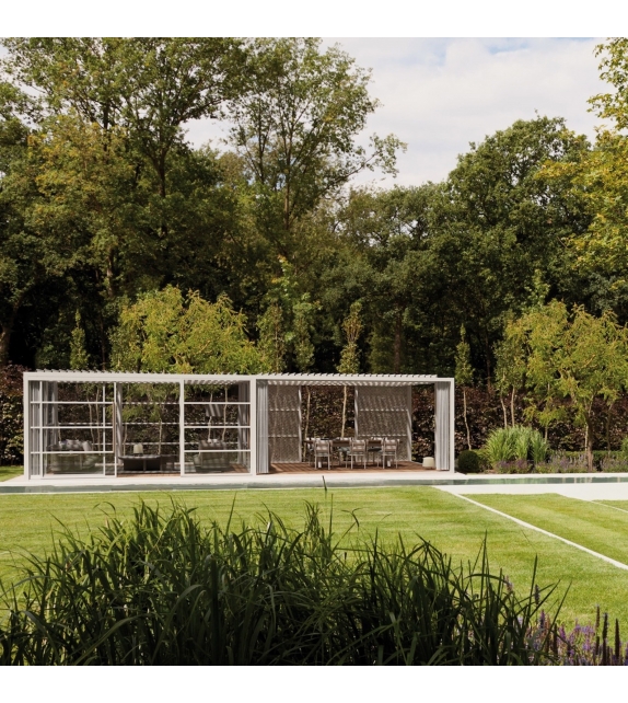 Pavilions L Double diseñado por Kettal Studio es un gazebo, perfecto para decorar con estilo ambientes al aire libre. Estructuras daybed y pérgolas de aluminio se pueden personalizar y configurar con persianas, cortinas, paneles y techos.
