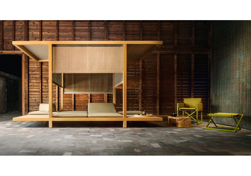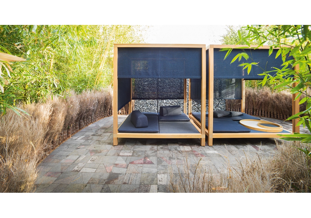 Toku diseñada por Vincent Van Duysen para Paola Lenti es una estructura sombreadora con asientos equipados con un colchón, perfecta para decorar ambientes exteriores con estilo. Estructura en madera maciza de cedro, paneles de cobertura y cortinas laterales correderas en tejido. Colchón con funda de tela desenfundable.