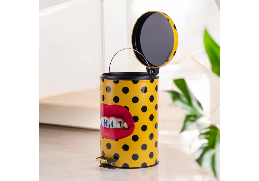 Dustbin Toiletpaper diseñado por Toiletpaper para Seletti es un cubo de basura cilíndrico fabricado en metal y plástico pintado con un pedal especial para facilitar la apertura de la tapa. El cubo de basura está disponible en diferentes modelos.