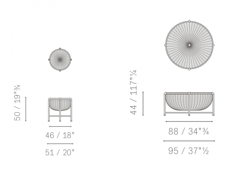 | Dimensiones | Ø 51 x H 50 cm; Ø 95 x H 44 cm. |