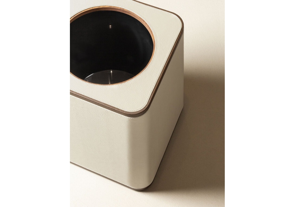 Office Collection diseñada por Giobagnara para Poltrona Frau es una papelera con estructura cuadrangular de madera revestida en Pelle Frau® con tapa extraíble. Office Collection está disponible en diferentes acabados de piel.