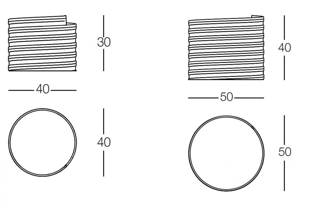 | Dimensiones | Ø 40 x H 30 cm; Ø 50 x H 40 cm. |