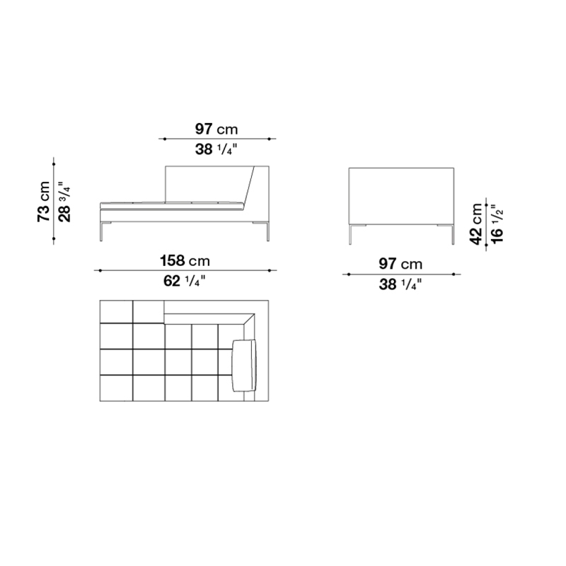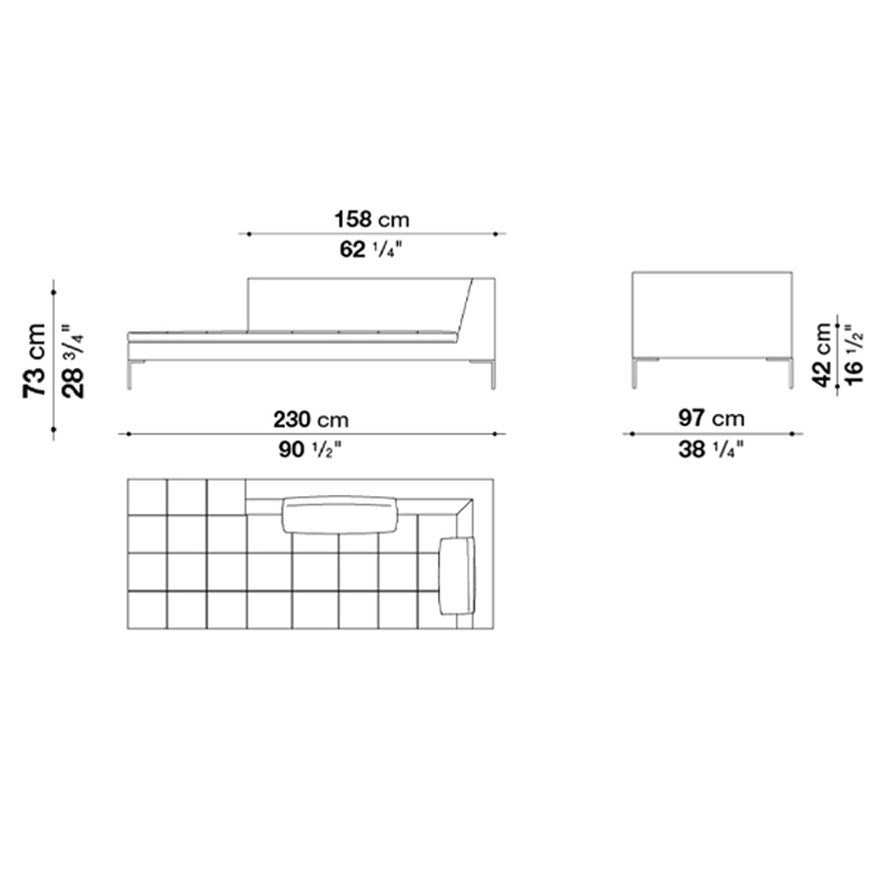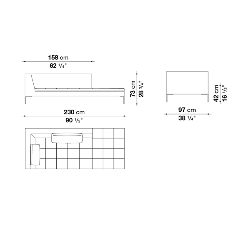 | Dimensiones | 158 x 97 x H 73 cm; 230 x 97 x H 73 cm; 181 x 73 x H 60 cm. |