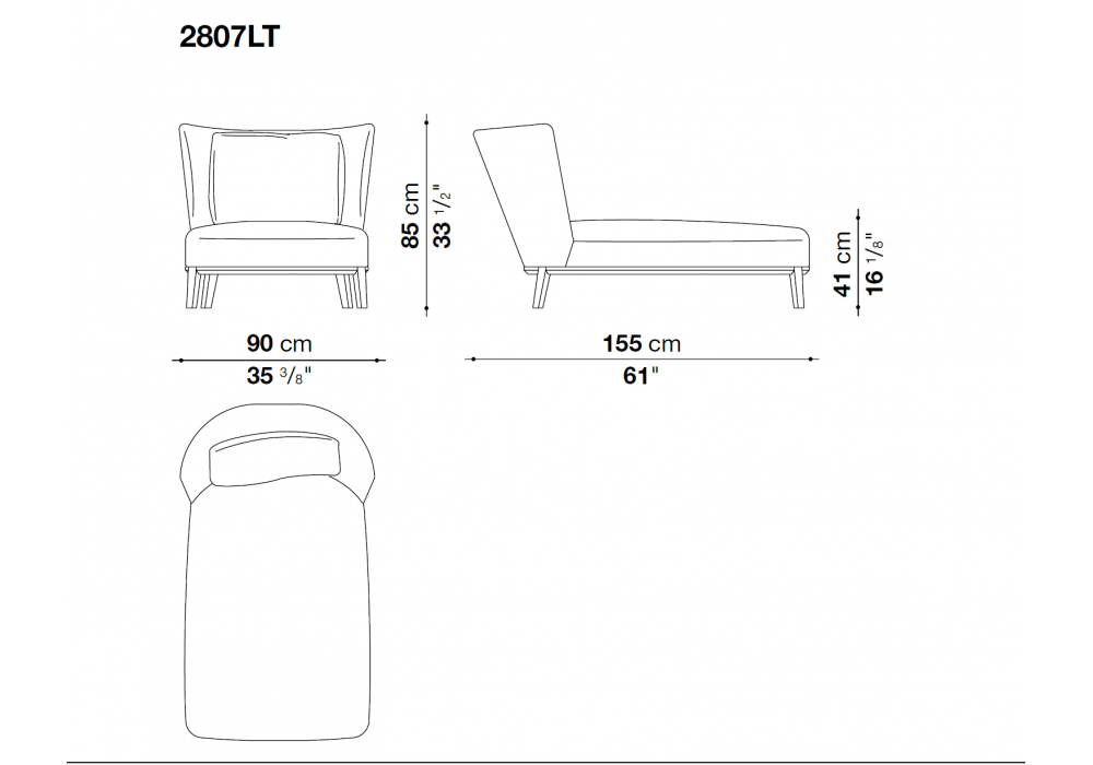 Febo diseñada por Antonio Citterio para Maxalto es una chaise longue con base en madera de madera en varios acabados o en wengué natural. Revestimiento en tejido o piel. Para la versión en tejido, las costuras están disponibles únicamente con punto festón; para la versión en piel, las costuras se pueden elegir entre punto festón o punto relieve. La versión con costura relieve se puede realizar únicamente tono sobre tono.