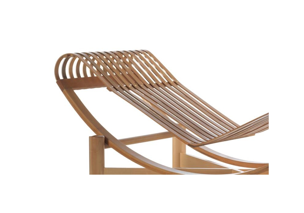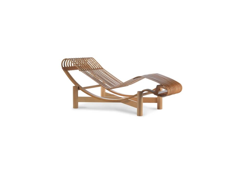 522 Tokyo Chaise Longue diseñada por Charlotte Perriand para Cassina es una chaise longue compuesta por listones curvados de bambú o teca y revestimiento de tela.