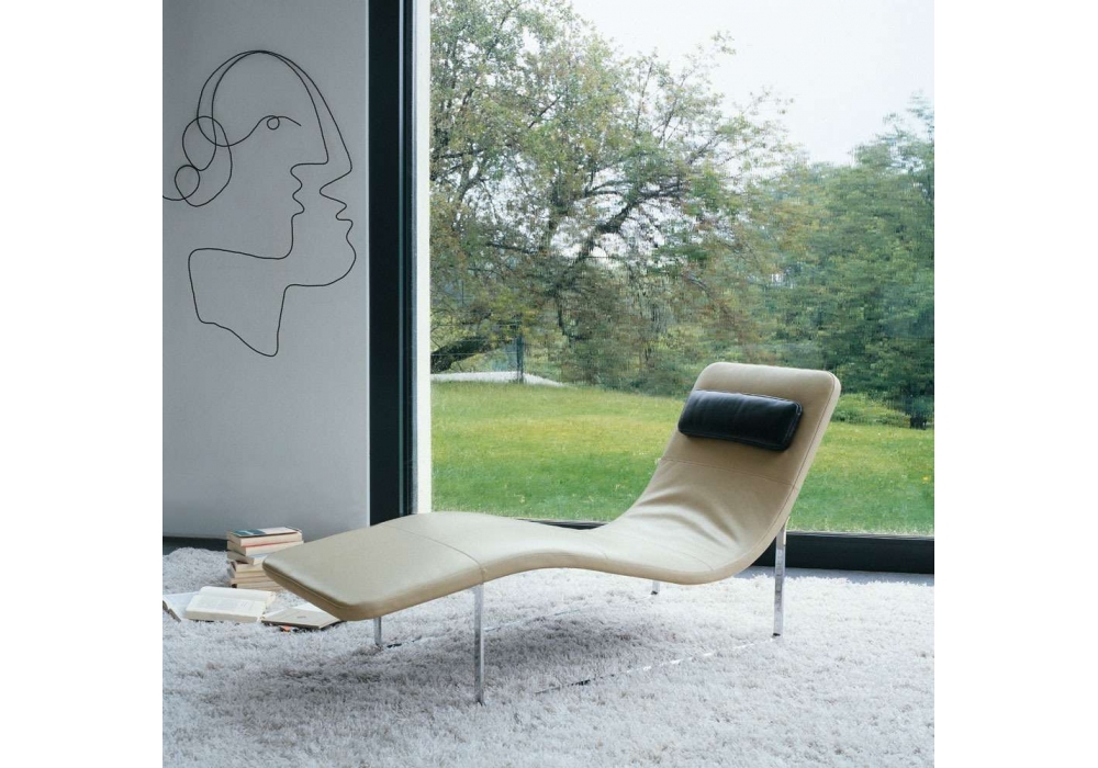Landscape diseñada por Jeffrey Bernett para B&B Italia es una chaise longue con estructura de acero pintado níquel bronceado o cromo brillante. Tapicería en diferentes tejidos o pieles. Como accesorio es posible añadir el cojín reposacabezas.