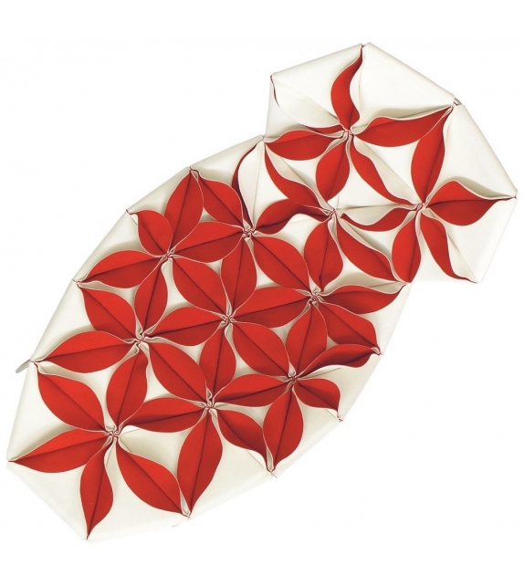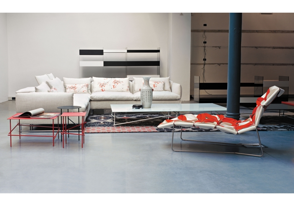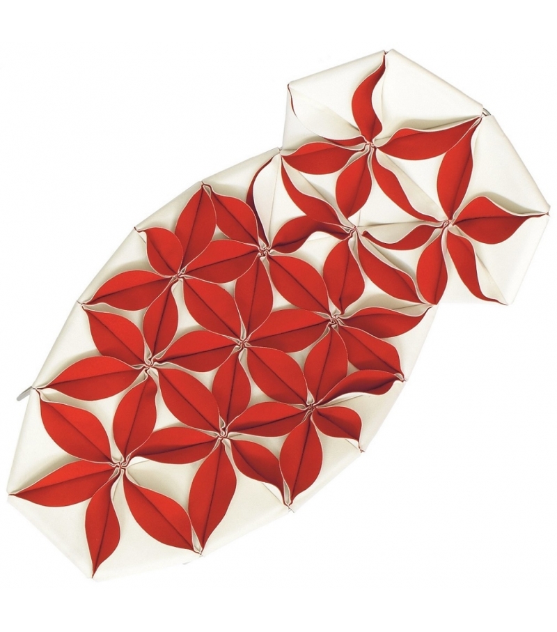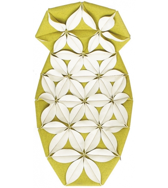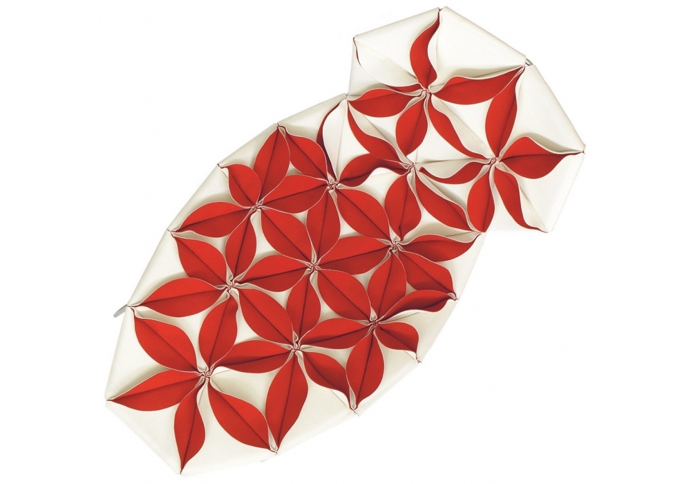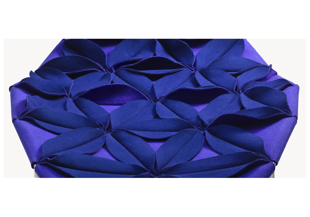 Antibodi is the chaise longue with flowers designed by Patricia Urquiola for Moroso. A new shape for a non-padded chair, three-dimensional geometry derived from the cellular genesis of sewn petals using the layout of a graphic structure with a triangular base. The result is a floral explosion, a marvellous symbolic display of fertility. Antibodi is a life force, the epitome of wonderful yet contradictory charm. The petals, in double sided fabric- felt and baize or baize and leather- create a structural upholstery, which is fixed to the stainless steel frame. The upholstery has a dual personality, welcoming and feminine when the petals face upwards, intentionally severe and matelassé when the petals face down. Base in stainless steel and glides in PVC. Structural cover in fabric or leather bonded with polyurethane foam and mesh.