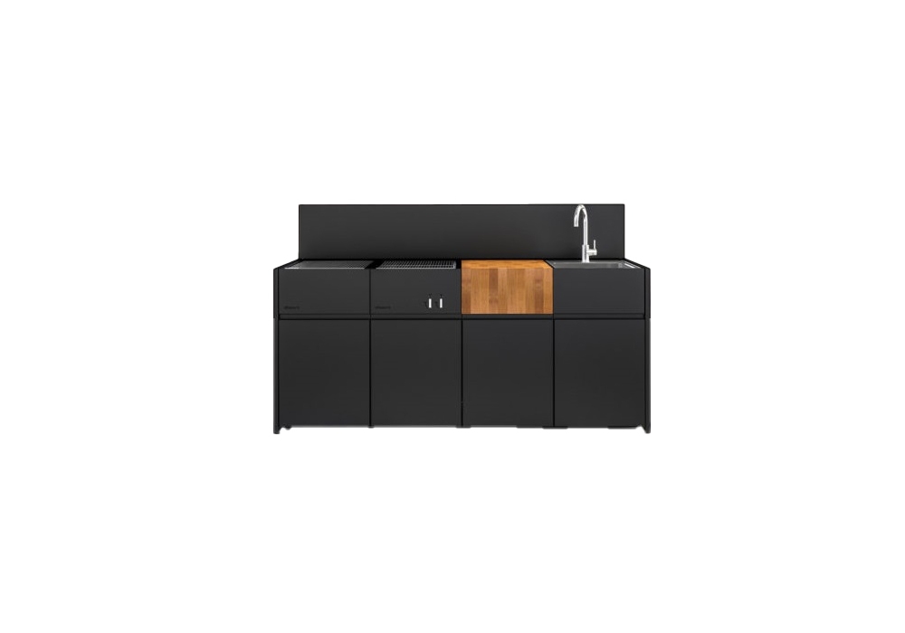 Kitchen Island diseñada por Broberg & Ridderstråle para Röshults es una cocina modular para exteriores realizada en acero inoxidable.