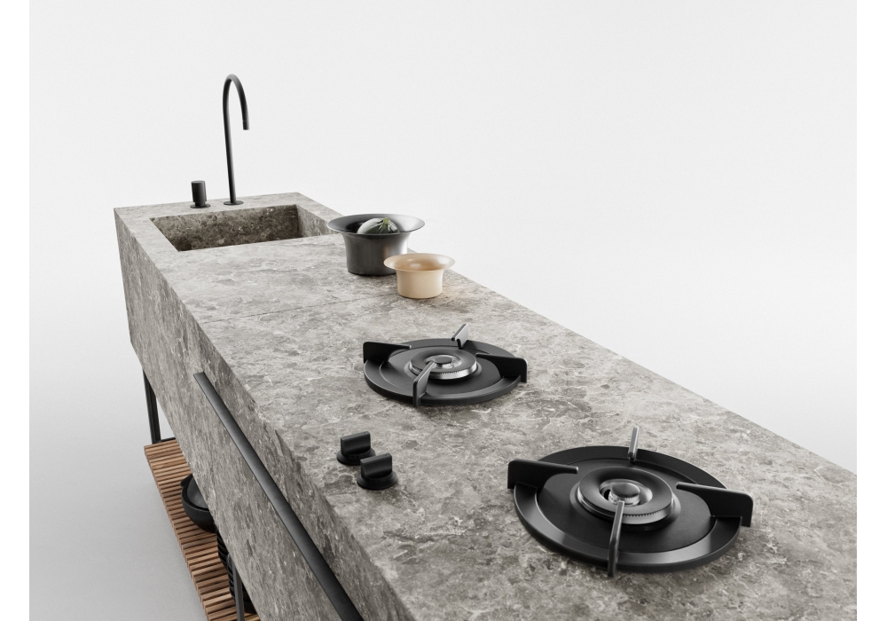 Base Kitchen de Kettal Studio es una cocina modular para exteriores disponible en diferentes configuraciones. Incluye una cocina con fogones de gas, barbacoa, fregadero, encimera y estante inferior de teca. Para una configuración personalizada, póngase en contacto con nuestro servicio de atención al cliente.
