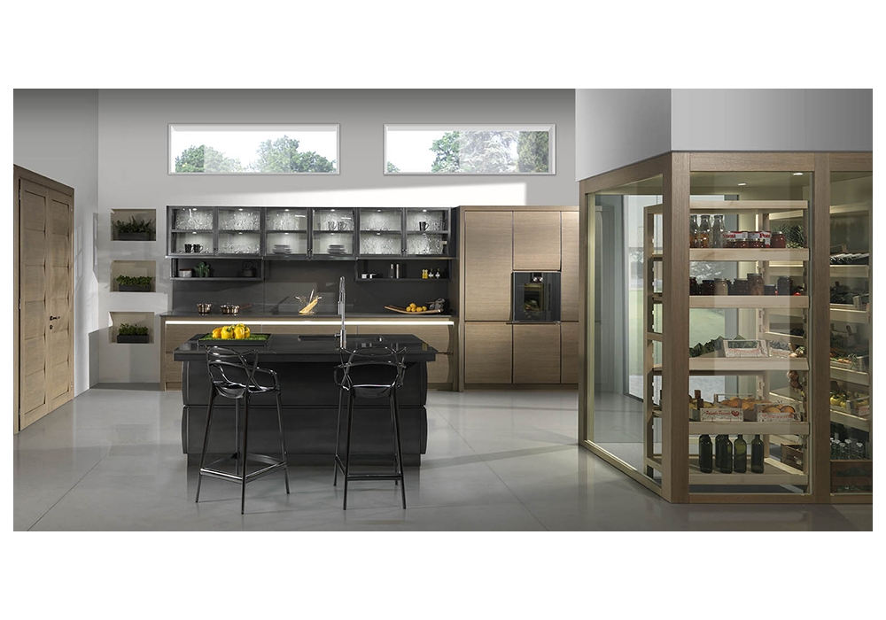 Chronos diseñada por L'Ottocento es una cocina que destaca el talento creativo en cada detalle. Disponible en diferentes acabados y composiciones.